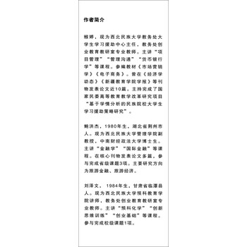 缑婷,现为西北民族大学教务处大学生学习援助中心主任,教务处创业教育教研室专业教师。主讲“项目管理”“管理沟通”“货币银行学”等课程。参编教材《市场营销学》《电子商务》。曾在《经济学动态》《新疆教育学院学报》等刊物发表论文近10篇。主持完成了国家民委高等教育教学改革研究项目“基于学情分析的民族院校大学生学习援助策略研究”。