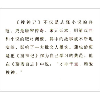 《崇文馆·小说馆:搜神记(注释本 无障碍阅读版)》不仅是志怪小说的典范,更是唐宋传奇、宋元话本、明清戏曲和小说的取材渊薮,其中的故事被不断地演绎,影响了一大批文人墨客。蒲松龄更是把《搜神记》作为自己学习的典范,他在《聊斋自志》中说:“才非干宝,雅爱搜神。”