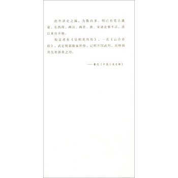 较显者有《皇明英烈传》,一名《云合奇踪》,武定侯郭勋家所传,记明开围武烈,而特扬其先祖郭英之功。