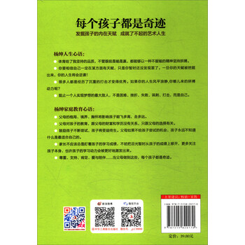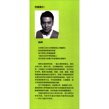 《每个孩子都是奇迹:发掘孩子的内在天赋成就了不起的艺术人生》作者杨绅是一所艺校的创办人,对艺考生的思想和学习都比较熟悉,对学生家长和艺校的老师也比较了解,《每个孩子都是奇迹:发掘孩子的内在天赋成就了不起的艺术人生》正是结合这些作者所熟知的内容,结合艺考生的高中学习,针对文化课与专业课的学习特点,对艺考生的学习误区、学习方法、学习技巧、如何规划未来以及父母应该怎么做来阐释了高中生该如何才能实现梦想,成就自己人生的奇迹。