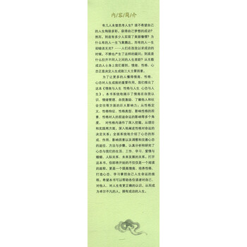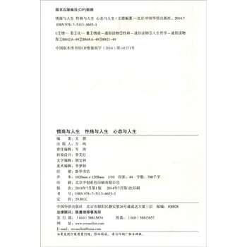 《情商与人生 性格与人生 心态与人生(超值白金版)》系统地揭示了情商在自我认识、情绪管理、自我激励、了解他人和社会交往等方面的巨大影响力;从性格定义、性格特征、性格类型、影响性格的因素、性格对人的前途命运的影响等多个角度,对性格内涵作了深入挖掘,从理论和实践两方面,深入地阐述性格对命运的决定关系;全面系统地介绍了心态的形成、作用、影响因素以及调整和完善心态的途径、方法与步骤,认真分析和研究了心态与我们的生活、工作、学习、爱情与婚姻、人际关系、未来发展的关系。打开《情商与人生 性格与人生 心态与人生(超值白金版)》,你即将开始的不仅仅是一个阅读的旅程,更是一个提高情商、培养性格、打造心态、学习掌控自己人生命运的旅程。希望《情商与人生 性格与人生 心态与人生(超值白金版)》可以帮助各位读者对自己、对他人、对人生有更正确的认识,从而成为卓尔不凡的人,拥有成功的人生。