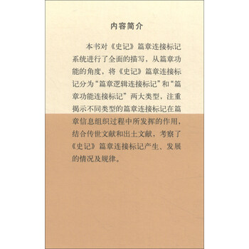第一节 《史记》篇章连接标记在篇章信息组织中的作用