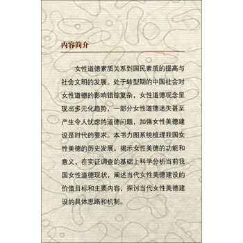 女性美德更注重和谐。女性是人类生命的直接创造者和养育者,在家庭中扮演着重要角色。协调家庭成员关系、家庭与家庭之间关系、家庭与邻里关系是她日常生活中的一项重要内容,她在生活中更深切地意识到人与人之间关系的紧密性和依存性,她的意识里呈现出更多的关系化的色彩。她向往人与人之间的和谐,反对人与人之间的对立和战争。我们常说,女性是情感的动物,其实指的是女性对人的生命的重视大大超过对抽象原则与信仰的关心。女性情感中最核心、最根本的是母性,这一人类面对自己孩子时产生的情感,促使人类对未成熟的生命加以保护、滋养和培育。在母性的思考中,生命的重要性是第一位的,生命的价值高于一切。女性格外关注孩子的身体健康和生命的安全,任何时候好好活着是母亲对孩子的最高期待。女性大都反对战争,主张和平。由于母亲与孩子的关系是依赖情感维系的,这种关系不是占有和被占有或征服与被征服的关系,而是关怀与被关怀或爱护与被爱护的关系,母爱是无条件的,它表现为慈悲与仁爱,是对差异性的尊重。如果将母子这种关系推及到其他社会关系,那人与人之间的关系将会变得更加和谐,整个世界也将变得更加美好。其实整个地球村就是一个大家庭,依照母性原则建构的社会更具包容性,女性的宽容品性能使所有不同类型的人、不同民族的人都生活得幸福而有尊严。