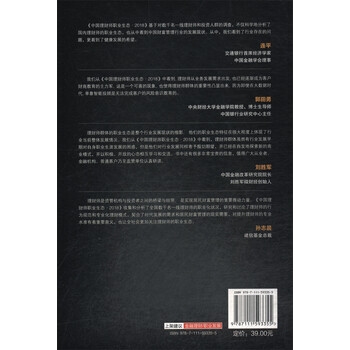 ★理财师群体的职业生态是整个行业发展现状的缩影,他们的职业生态特征在很大程度上体现了行业当前整体发展情况..我们从《中国理财师职业生态·2018》中看到,理财师群体虽然有行业发展早期对自身职业生涯发展的困惑,但是他们对行业发展同样寄予殷切期望,并已经在自发地探索新的商业模式,并以积极、开放的心态相互学习和交流。书中还有很多非常宝贵的信息,值得广大从业者、金融机构、普通客户乃至监管单位认真研读。