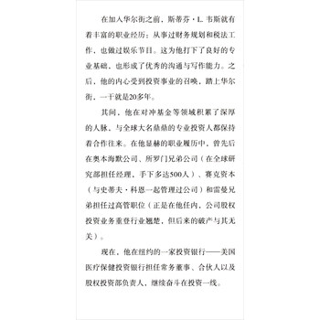 斯蒂芬·L.韦斯(Stephen L,Weiss),在加入华尔街之前,斯蒂芬·L.韦斯就有着丰富的职业经历:从事过财务规划和税法工作,也做过娱乐节目。这为他打下了良好的专业基础,也形成了优秀的沟通与写作能力。之后,他的内心受到投资事业的召唤,踏上华尔街,一干就是20多年。