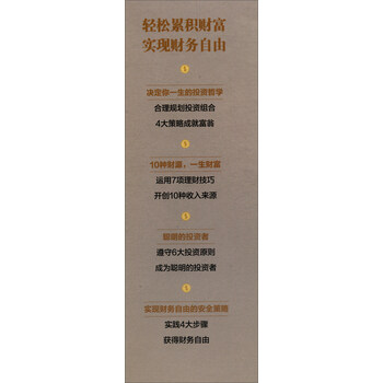 ★这一切给了你什么?答案是,一种随心所欲的生活方式。西班牙有句谚语把这种生活方式的精髓表达得淋漓尽致:健康、金钱和爱情,加上享受前3项生活要素的时间。生命中大部分令人开心或者失望的事大都源自你对金钱的决定。究竟是想体验心灵宁静还是让自己焦虑不断?关键在于你是否能把钱管好。