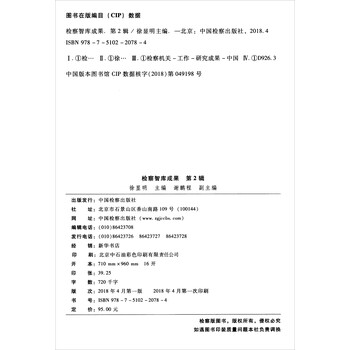 《检察智库成果(第2辑)》依照研究的问题领域与具体研究主题,本辑研究成果可以分为九个部分:两法修改、检察改革、民事检察监督、行政检察监督、检察环节非法证据排除、检察工作与“大数据”运用、检察机关保障律师权利、个罪研究和域外经验。