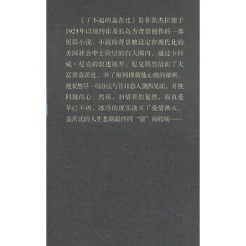在我这般吹嘘了一通我的宽容精神之后,到头来我还得承认宽容是有限度的。人的品行有的建筑在坚硬的岩石上,有的建筑在泥沼里,不过超过一定的限度后,我就不在乎它建在什么之上了。去年秋天我从东部回来的时候,我真想让全世界的人都穿上军装,在道德上都永远保持立正的姿势;我不再要参与放浪形骸的玩乐,也不再想毫无顾忌地窥探人们的灵魂。只有盖茨比,以其名作为这《了不起的盖茨比(名家名译)》名的男主人公,不包括在我的这一改变了的行为之列——盖茨比,此人体现了一切我分明蔑视的事物。不过,如果说人的品格是由一连串美好的行为举止组成的,那么,在盖茨比身上,倒也不乏某种光彩,不乏一种对生活展现出的种种憧憬的高度感应能力,宛如他身上接通了一台能测出万里之外的地震的精密机器。这种感应力与那美其名日“创造性气质”的软绵绵的感受性毫不相干——它是一种与希望维系在一起的非凡品质,一种富于浪漫色彩的敏感性,这是我在别人身上从来没有见到过,而且以后也不大可能见到的。不——到最后盖茨比证明并没有错!倒是那吞噬了盖茨比的力量,那在其梦想破灭之后扬起的污垢飞尘,使我暂时丧失了窥视人生的短暂悲伤和片刻欢乐的兴趣。