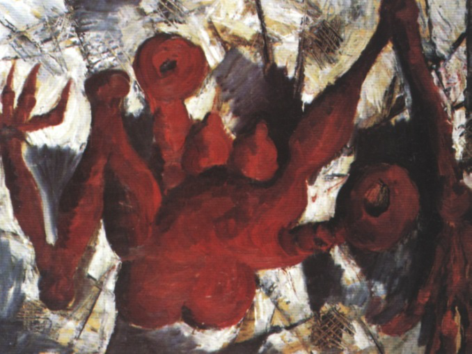 图0-3 毛旭辉,《红色的人体》,纸板油彩,1975px×2625px,1984