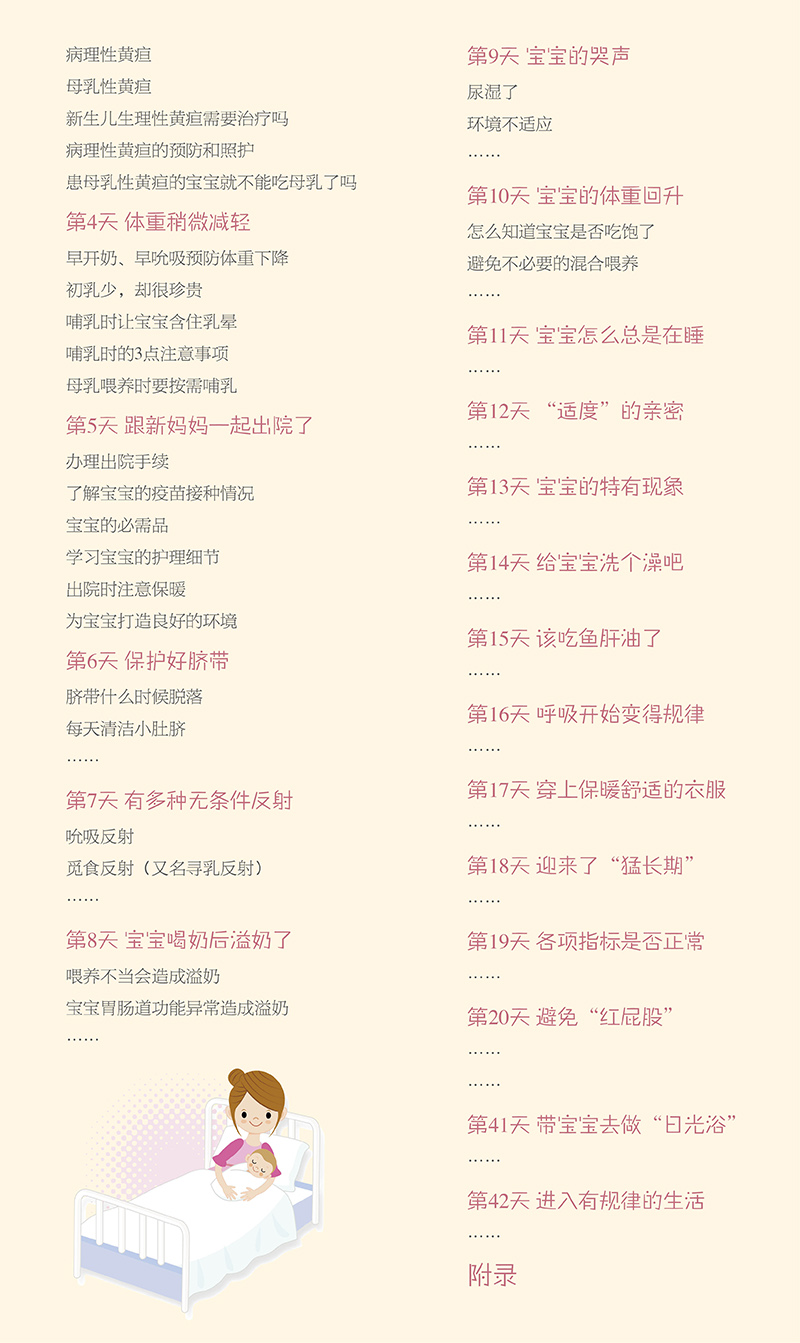 产后42天对于新妈妈和宝宝来说非常重要,是新妈妈身体恢复、宝宝发育的关键时期。在这段时间里,新妈妈要通过饮食、生活细节、运动、伤口护理等方面照顾好自己。同时,还要兼顾催乳、哺乳、照顾宝宝等工作。新妈妈是不是觉得坐月子很难?别担心,本书就将你想知道的、该知道的养护知识都告诉你。