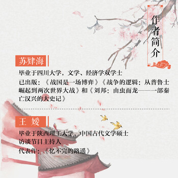 苏肄海:毕业于四川大学,文学、经济学双学士,已出版《战国是一场博弈》《战争的逻辑:从普鲁士崛起到两次世界大战》和《刘邦:由虫而龙——一部秦亡汉兴的大史记》。王嫒:毕业于陕西理工大学,中国古代文学硕士,访谈节目主持人,代表作:《忆不完的路遥》。
