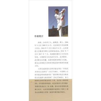 孙刚,山东济宁人,副教授,博士。2006 年9月至2009年6月,北京体育大学攻读博 士学位;2010年5月至2014年6月,山东师 范大学教育学博士后科研流动站;2014年7 月至2017年7月,美国俄亥俄州立大学访问 学者。主要研究方向为武术文化、武术教育、 武术跨文化传播、民族传统体育理论与实践。 现为山东师范大学体育学院民族传统体育系副 主任。 主持完成国家社会科学基金项目“中国武 术审美文化研究”(IICTY001)、中国博士后 科学基金特别资助项目“新时期学校武术教育 的文化选择与体系架构”(2012T50626)、参与 国家社会科学基金项目3项。先后在《体育科 学》、《中国体育科技》、《北京体育大学学报》 等期刊发表论文30余篇。获山东省省级优秀硕士论文、山东省省级教学成果奖三等奖3项 及山东师范大学第二届青年教学能手称号。