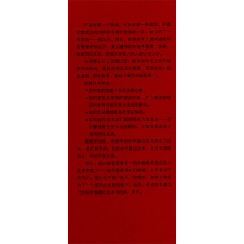 最重要的是,你能学到如何通过运用预见力成为一流的领导者,包括如何通过分享、支持去激励他人,同时开悟自我。
