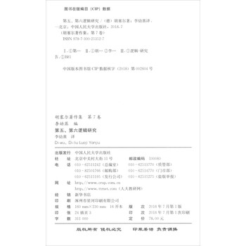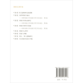 《第五、第六逻辑研究/胡塞尔著作集 第7卷》由主题相互比较独立的两卷组成,第一卷论述关于逻辑学与心理学的关系问题,第二卷由六部长短不一的论文组成,其中前四部研究提供了建构现象学所必需的基本逻辑学、符号学概念和理论,中译本《胡塞尔著作集》译出的这第五、第六两部,可以说是沟通胡塞尔“逻辑心理学”阶段思想到“纯粹现象学”阶段思想的理论桥梁,两部各有其相对独立性的研究,均直接连通于日后作为现象学第1经典的《纯粹现象学通沦》。
