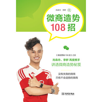 ★qw辅导。微商落地内训师、自我营销高手肖森舟和《畅销书浅规则》作者、出版专家李鲆,继《微信营销108招》之后,再次携手推出《微商造势108招》,分享多年营销造势和内训经验,帮助读者掌握微商造势的手段、方法和秘诀。