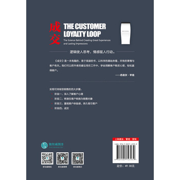 《成交》深入分析了客户的购买行为,保持老客户长时间的购买力,持续提取顾客的价值。通过介绍客户体验学,剖析了实现客户忠诚循环的四个阶段,即深入了解客户心理;将潜在客户转换为销售对象;重视客户体验感,持久吸引顾客,进而实现最终的目标---成交。
