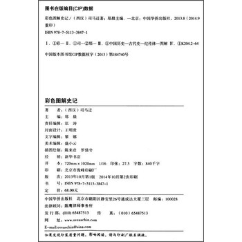 《彩色图解史记(超值全彩白金版)》介绍了研读《史记》,除了可以丰富自己的史学知识,更主要的是可以以史为镜,探寻社会发展与国家兴亡的规律、经验和教训,寻找人生道路上的坐标。《史记》是西汉时期著名历史学家、文学家司马迁所著,记载了上起轩辕下至汉武帝太初年间,共三千多年的历史变迁。它规模宏大、体制完备,涉及了哲学、政治、经济、文学、美学、天文、地理甚至医学等方面,几乎囊括了中国早期社会活动的全部内容,堪称一部百科全书式的鸿篇巨制。它既是对先秦文化的重要总结,也是后人了解西汉初期社会政治经济生活的第一手资料,堪称“史家之绝唱,无韵之离骚”。读中国历史,不能不读《史记》。然而,随着时光的流逝,《史记》原本精彩的语言给当代人造成了一定的阅读障碍,加之篇幅浩繁,影响了普通读者对于这座巨大宝库的开掘。为了帮助读者快速掌握原著的精华,我们精选了其中最具代表性且最精彩的篇章辑录成书,并绘制了大量精美插图,力求更加真实、直观、全面地将中国历史的丰富与精彩呈现在读者面前,引领读者跨越时空的距离,进入辉煌的历史殿堂,从全新的角度和崭新的层面去考察历史、感受历史、思考历史。