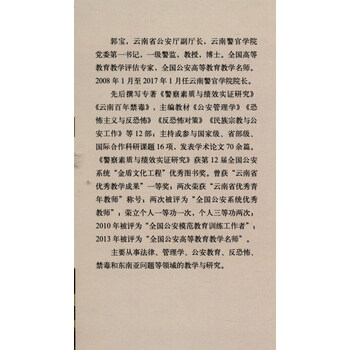 郭宝,云南省公安厅副厅长,云南警官学院党委第1书记,一级警监,教授,博士。全国高等教育教学评估专家,全国公安高等教育教学名师。2008年1月至2017年1月任云南警官学院院长。