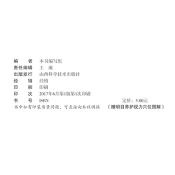 本挂图1张,小儿眼科治疗常用穴位及标准对数视力表(5米读值)1张。还附赠国家标准的眼保健操彩色插页一张