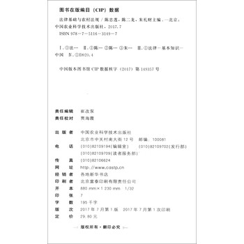 《法律基础与农村法规/新型职业农民培育系列教材》主要介绍国家的各种法律法规、个人行为的法律后果、民事活动的规定、法律对人身权财产权的规定、婚姻家庭和遗产继承的规定等,还介绍了农村土地承包权、宅基地使用权等的规定,适合作为农民学习材料和培训教材。