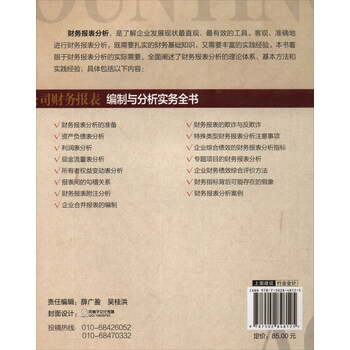 《公司财务报表编制与分析实务全书(升级版)》共包括十五章,详尽介绍了财务报表所包含的四大报表及附注的相关内容。在每一章中都首先介绍了报表的编制方法,以便能够编制符合要求的财务报表;之后就该报表所表现出的上市公司财务信息进行财务分析,以便信息使用者能够明白上市公司是否正常运营。《公司财务报表编制与分析实务全书(升级版)》还介绍了财务报表的欺诈与反欺诈,以便使财务报表使用者能够分辨报表信息的正确性和真实性。