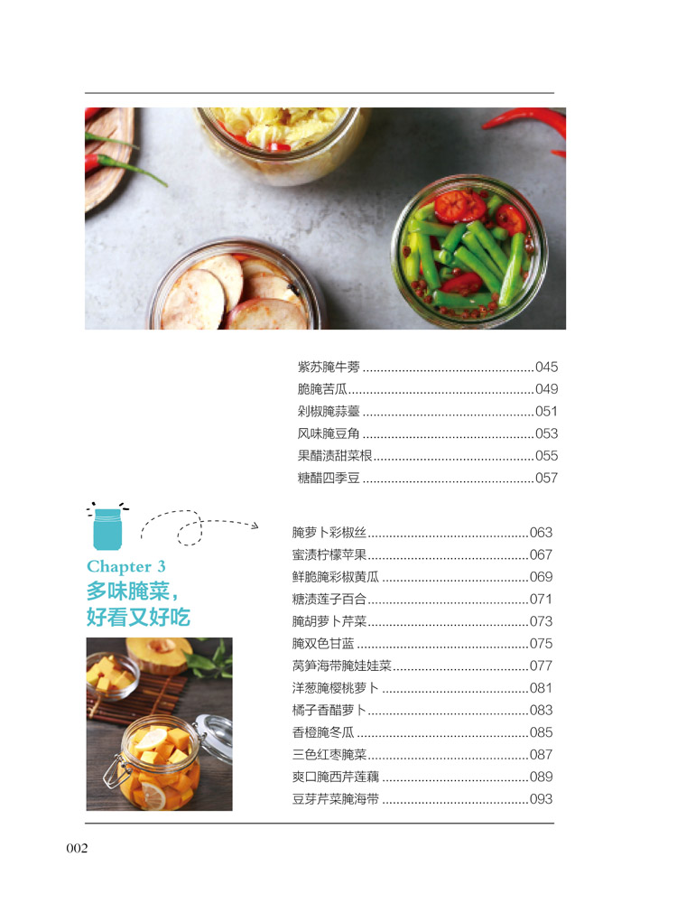 做好一罐腌菜只需要花上十几分钟,这样在一段时间内都可以随时品尝到用这些食材制成的风味小菜,如沙拉、小炒、三明治等。另外,还推荐了15 道用腌菜制作的精美料理,希望能抛砖引玉,为您开启美味健康的腌渍时光!