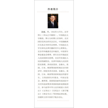 赵威,男,1962年11月生,法学博士(师从江平教授),中国政法大学教授,博士生和博士后导师。北京国际经济法研究会会长,中国海峡两岸关系法学研究会理事,中国政法大学全球化法律问题研究中心理事长,北京市仲裁委员会仲裁员,中国老年事业基金会理事。曾任北京市海淀区人民法院院长助理,北京市东城区人民法院副院长,天津市高级人民法院院长助理。多次到美国、加拿大、英国、日本、韩国等国家和地区访问和讲学。招收有多名美国、加拿大、英国、日本、韩国等国家和地区的留学生。主持国家社科基金,中国证监会、教育部、国家创新科技园区中关村科技园等多项国家和省部级项目。参与起草中华人民共和国《合同法》《证券法》《信托法》《原子能法》《核安全法》等多部法律法规。创建和主持中国原子能法论坛。