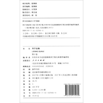 《列宁全集(第10卷 1905.3-1905.6 第2版 增订版)/列宁全集》共60卷,是我国自行编辑出版的版本,也是目前世界上收集列宁文献多的版本,共收载列宁文献9000多件。按照计划本次增订一是要根据近20年来《列宁全集》中文第2版使用中所发现的问题,以及新发现的列宁文献和国内外新研究成果,有必要对《列宁全集》中文第2版的部分译文进行必要的修订;二要是对新发现的列宁文献要按照列宁全集的收文原则进行增补;三是要根据《马克思恩格斯文集》、《列宁专题文集》、《马克思恩格斯全集》中文第2版的新译文对列宁引用的马恩论述进行必要的统一;四是要依据新的研究成果对各卷注释、索引等进一步修改完善。《列宁全集(第10卷 1905年3-6月 第2版 增订版)》收录列宁在俄国首次资产阶级革命期间即1905年3-6月所写的著作。