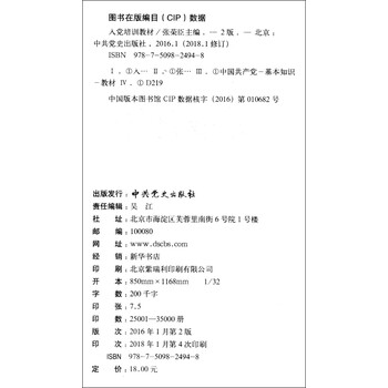 《入党培训教材(根据党的十九大精神组织修订)》架构体系主要包括政党概述、政党制度、政党章程、中国特色社会主义:旗帜·道路·理论体系·制度、党的性质、党的指导思想、党的理想和现阶段的奋斗目标、党的宗旨、党的组织制度和组织机构、党的纪律、党员义务和党员权利、发展党员的程序和手续等内容。全书不仅各章都设置了测试题,还在教材的最后收录了入党常用文书写法及范文,内容涉及入党申请书、思想汇报、入党志愿书等入党有关文书撰写的方方面面。为有助于更好地检查培训效果和学习情况,还附录了一套入党积极分子培训测试题。《入党培训教材(根据党的十九大精神组织修订)》适应入党积极分子的学习需要和基层组织发展党员工作的需要,既可作为党组织对入党积极分子进行培训的辅助教材,也可作为入党积极分子的自学读物。