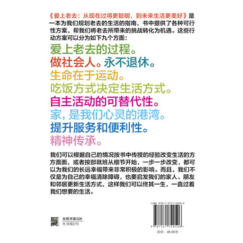 ◆ 爱上老去:将我们对衰老的恐惧转化为对生活的赞美和感恩。作者以年轻人的角度展示我们年轻一代年老后的生活蓝图,满满的正能量。
