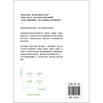 《深度影响》是写给内向者的提升书。在作者看来,影响力有两个核心要素——喜欢和尊敬,由此又分化出影响力的四种类型:休眠型、亲和型、信服型。本书提供75条简单可行的建议,教你增强受喜爱和/或受尊敬程度,实现影响力类型的自然转化,最终成为任何你想要成为的人——让自己变得更加鼓舞人心,更好地与同事、朋友和家人保持联系。