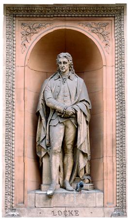 图示:洛克的雕像身列伟大的科学家和哲学家之列,装饰伦敦的皇家学会。