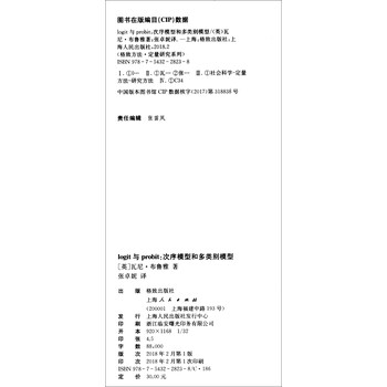 《logit与probit:次序模型和多类别模型》致力于分析因变量具多类别时的估计情况,关注离散和次序形式的因变量,并把处理对象扩展到具有两个以上结果的多类别或非次序因变量。另外,作者提供了十分有用的计算机程序详情。