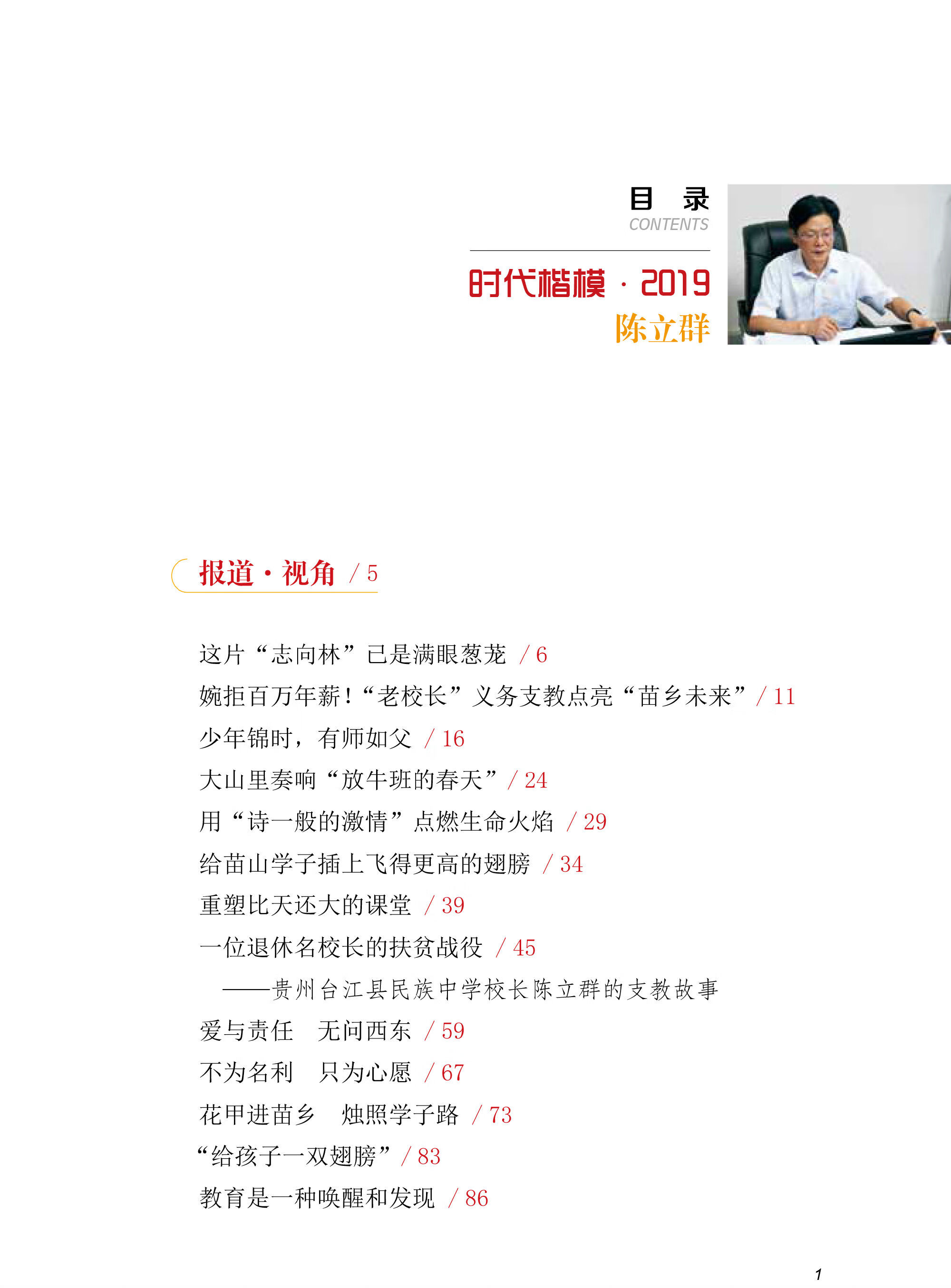 陈立群从教近40年,担任中学校长34年,始终全面贯彻党的教育方针,致力于培养德智体美劳全面发展的社会主义建设者和接班人。他倡导宏志教育,引导学生立德成人、立志成才,退休后,陈立群婉拒民办学校高薪聘请,远赴黔东南贫困地区义务支教,培养出一支优秀教师骨干队伍,学校办学质量大幅跃升。他在支教期间翻山越岭、走寨访户,家访并资助100多户苗族贫困家庭,足迹遍布台江县所有乡镇,用义举带动更多人开展支教助学。本书收录了人民日报、新华社及中央电视台等媒体的报道评论、视频节目,通过图文并茂、链接网络媒体的方式,多侧面地呈现了陈立群的崇高形象。
