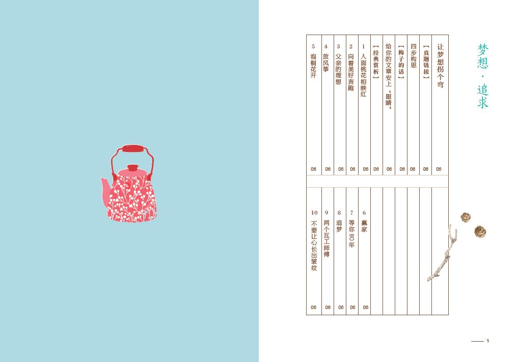 《捡得一颗欢喜心》《跟着一朵阳光走》《遇见你的纯真时代》从日常生活推开写作之门,培养自然而然的写作力。书中改变传统作文教学中片面追求应试技巧和写作套路的写作方法,而是从源头解决写作难题——和孩子在看似平常的小场景小事件中,一起发现生活中的小欢喜、小感动,传递爱与温暖,重读写作意义。