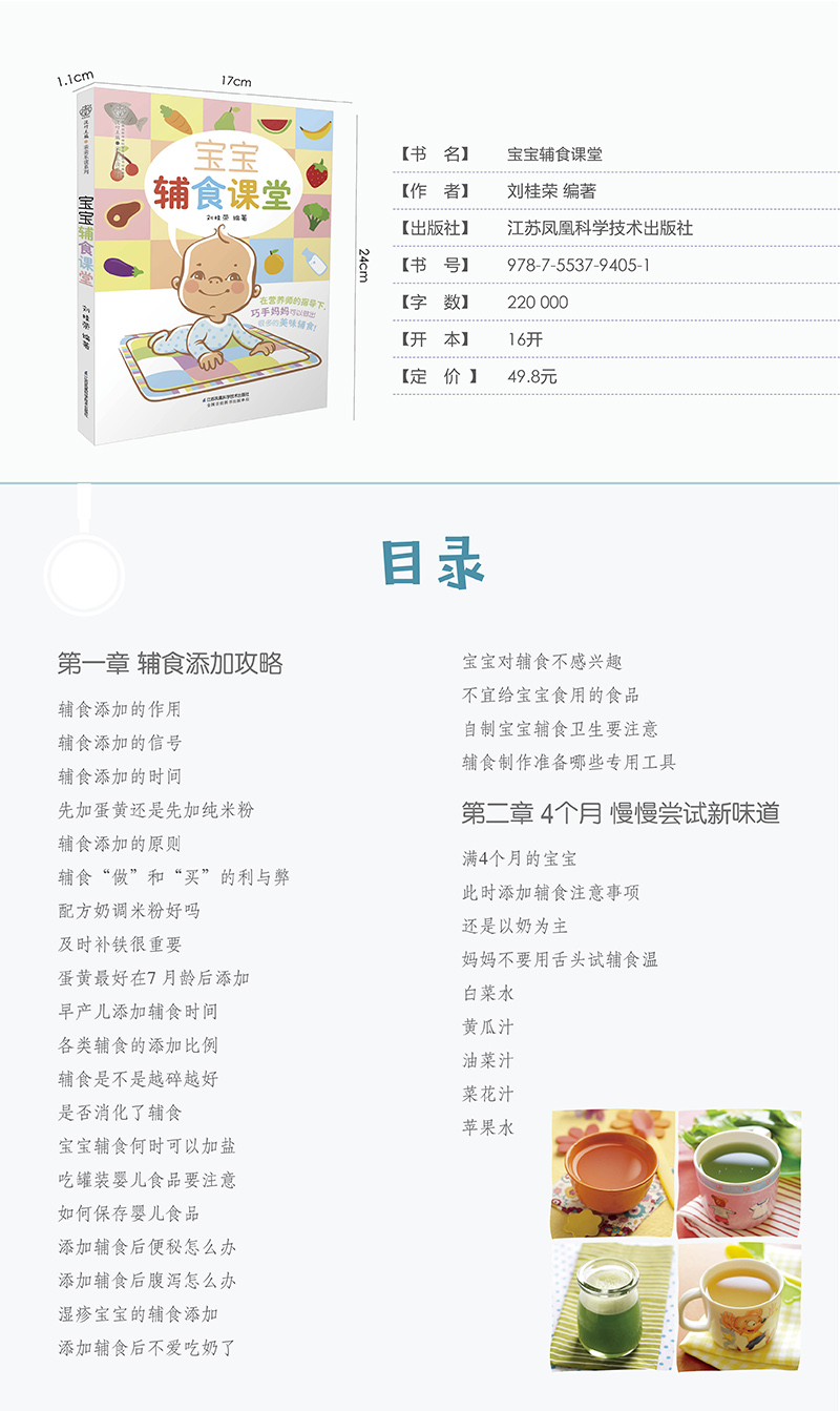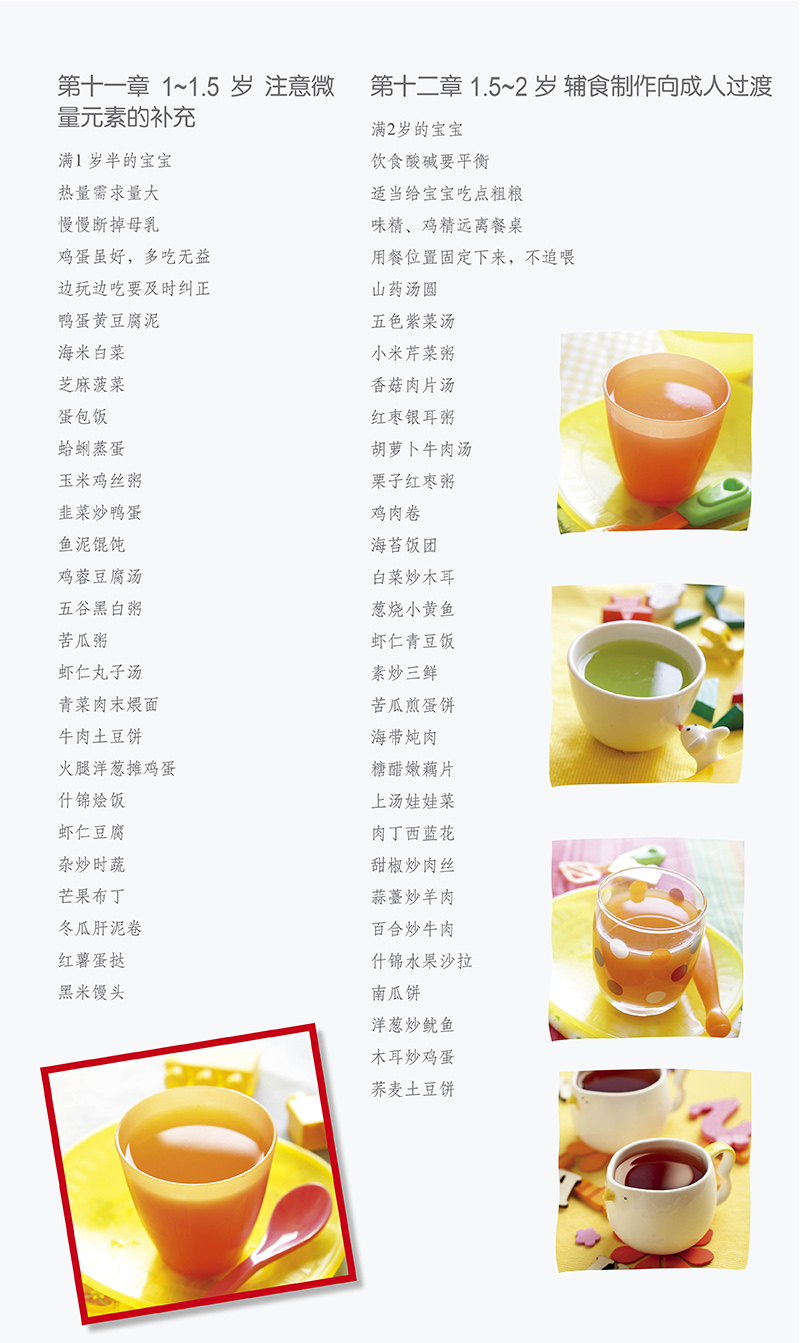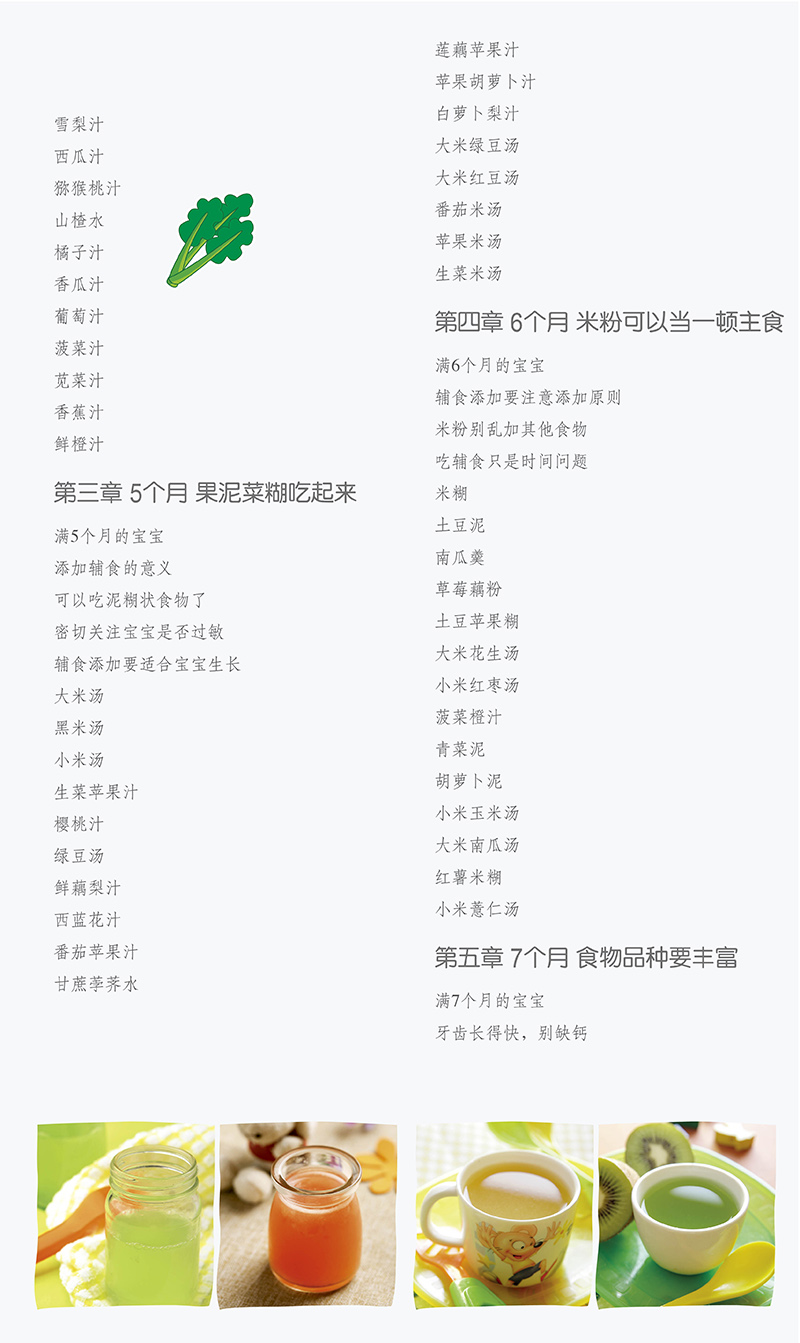 这本书将喂养知识与营养菜谱有机结合起来,让“深奥”的营养知识落实到可买到的普通食材上,再变成一道道宝宝爱吃的营养餐。精美的图片,简明的步骤,让即使不会做饭的妈妈“依葫芦画瓢” 也能搞定宝宝一日三餐、四季汤饮。专家还用通俗的语言告诉你:宝宝什么时候要补钙、什么时候要补锌、什么时候要“减肥”,让妈妈们一看就明白。
