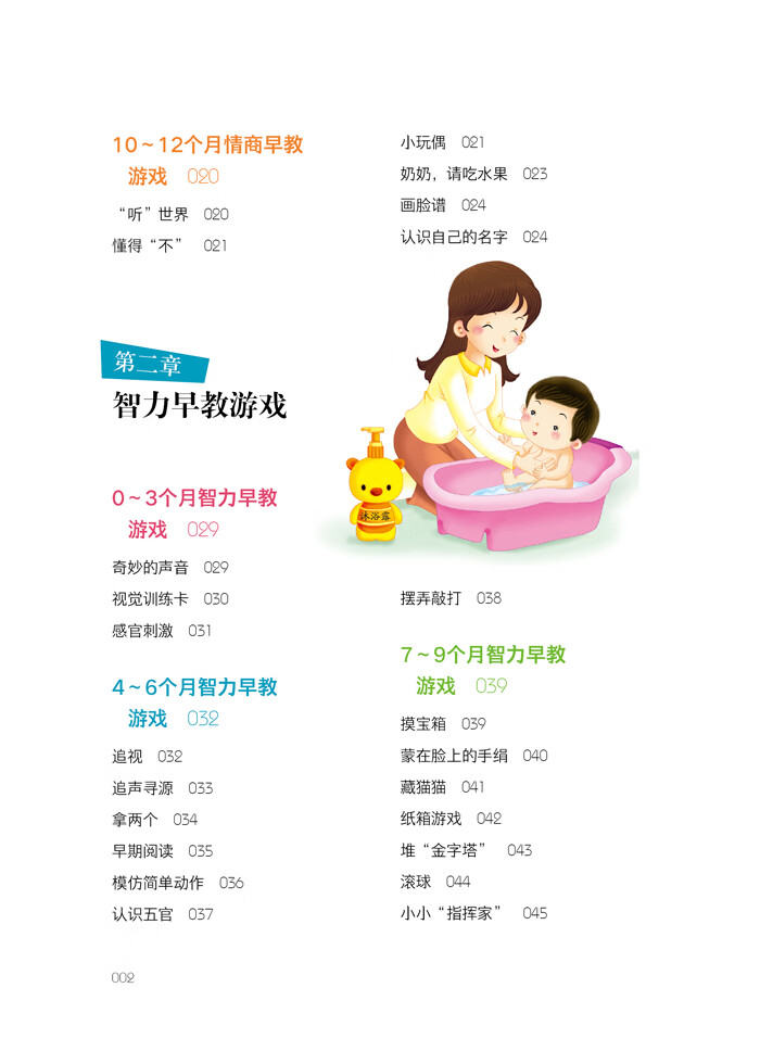 本书根据0~1岁宝宝的发育特点,从情商、智力、运动、艺术等方面有针对性地设计了多个简单易操作的亲子早教游戏。每个游戏都配有详细的游戏步骤和早教指南,让宝宝在玩耍中提升智商和情商。