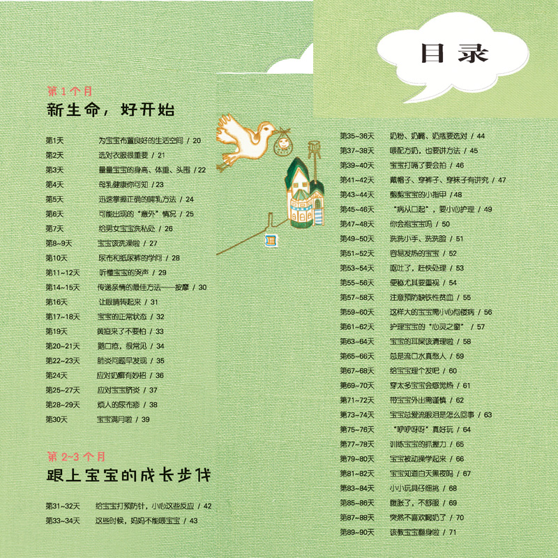 根据宝宝不同阶段身心发育的特点,为新手父母在养育的过程中提供了实用的育儿知识,内容囊括了宝宝出生到3岁的养育护理,包含喂养、护理、疾病预防、锻炼、教育等父母关心的问题。