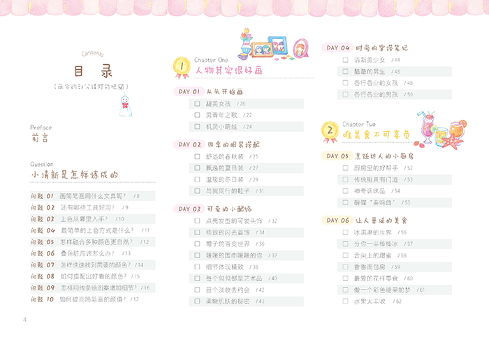 本书通过解答小白简笔画入门的10个问题引入正文,然后列举了21个主题的案例,包括人物、食物、大自然、旅行、手帐等实用主题。你只需拿起笔,跟着书中的简单步骤学习,就能轻松掌握简笔画的各种技巧。本书全部案例均使用水彩色铅笔绘制,和普通的笔不一样,水彩色铅笔可以用水将颜色溶开,使作品画出水彩一般的效果。让你同时体会到彩铅的细腻与水溶的魔力。面对如此有趣的绘画方式,快来跟着飞乐鸟一起来试试看吧!