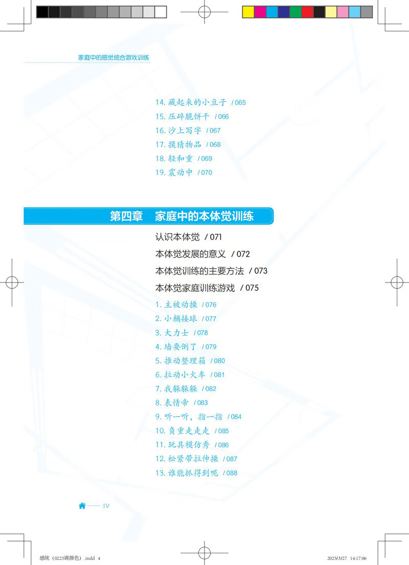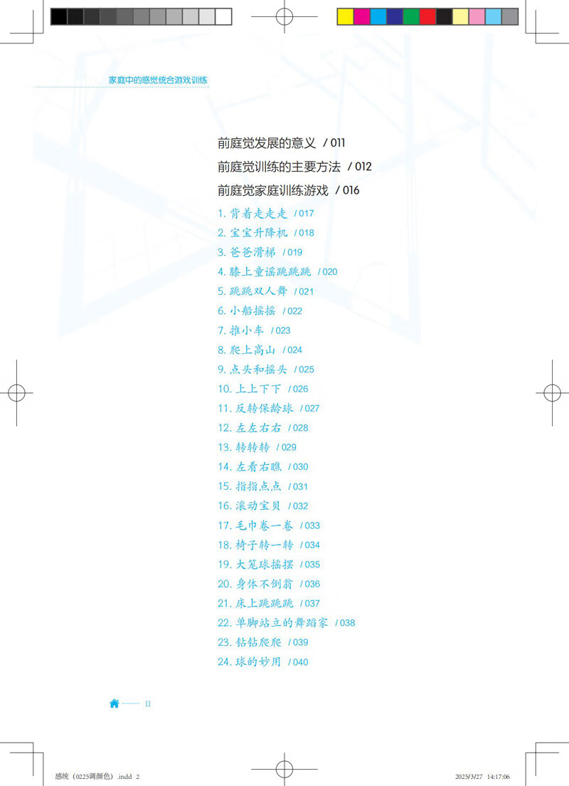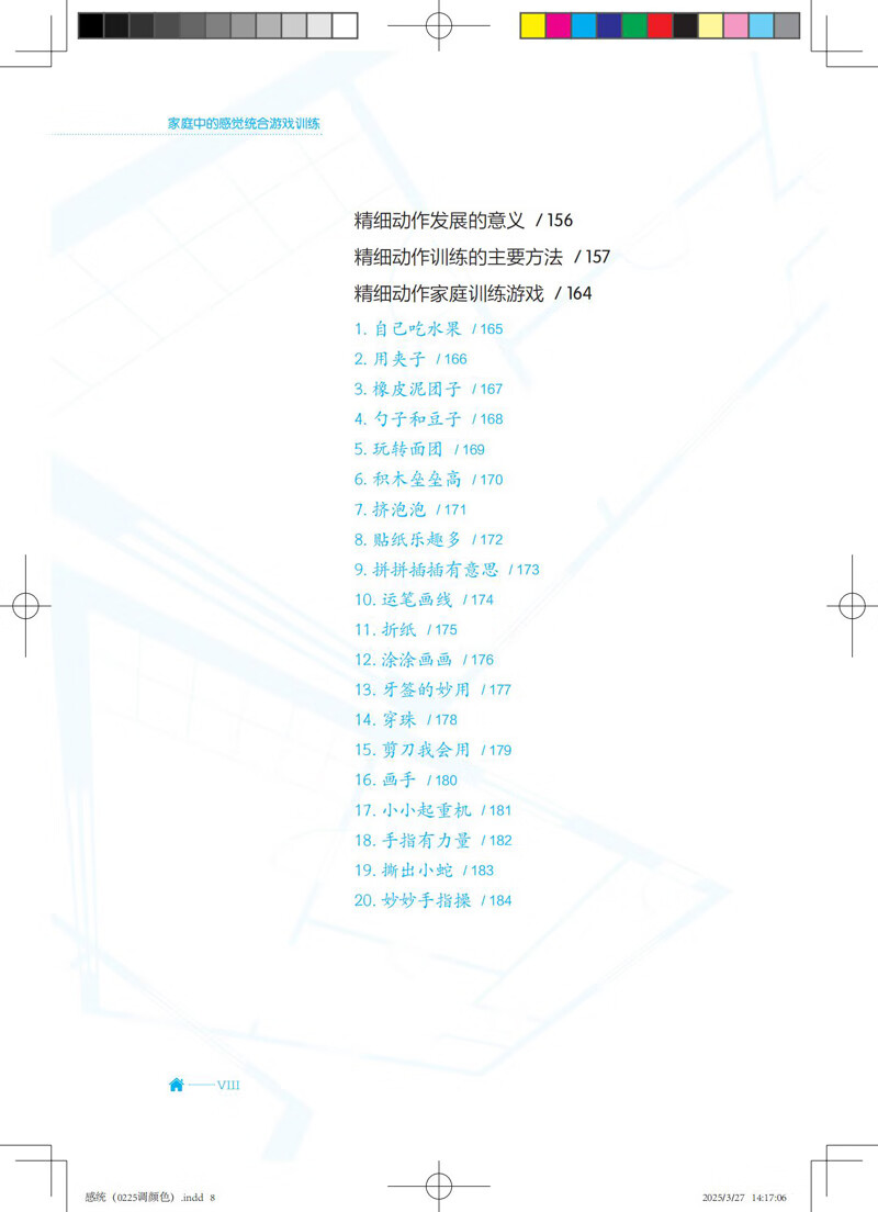 这是一本帮助父母利用家庭生活中简易的设备、有限的环境,来进行的个体化、易行的感觉统合训练的实操类图书。书中用通俗易懂的语言以及图解方式解读了感觉统合的理念,同时选取适合家庭操作的感统游戏,并重点诠释爸爸妈妈如何在家庭中进行相应的延伸,帮助孩子进行不同感觉领域的训练,提升感统协调能力。
