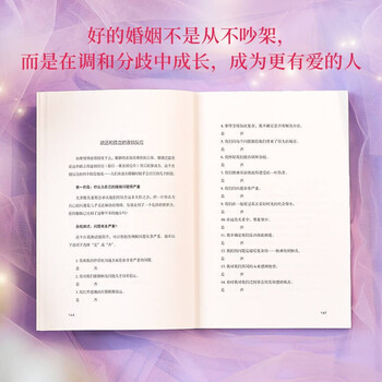5.通过大量情境性对话和自我测试,帮助你确认自己的婚姻类型、个人在婚姻中的优势与劣势,以及采用何种有针对性技巧来改善婚姻家庭关系。