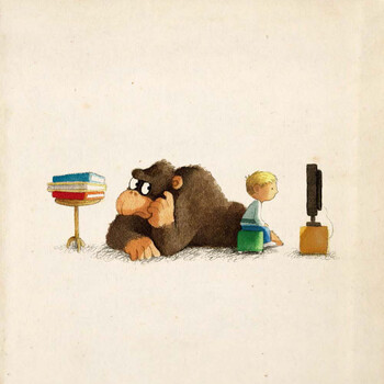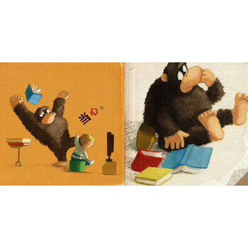 呈现在亚麻纹理的背景上的闹剧式动作、旧书的封面,以及实际的书页,给了所有年龄段的爱书人一个幸福的结局。即使读者错过了这些阅读的乐趣,他们仍然会喜欢那头大猩猩,它那祈求、渴望的眼神,它那毛茸茸的身体,让它走到哪里都会大受欢迎。