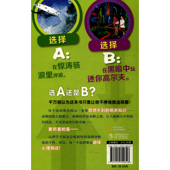 《美国国家地理少儿创意百科:选A还是B?(3)》孩子设计的充满创意的图书,它为小读者提供了许多二选一的选择,图书一方面为小读者介绍了与这些选择相关的科学知识,另一方面,当小读者作出选择后,书中会给出一个非常有趣的结论。这个结论将帮助小读者了解自己的内心,认识到自己究竟是一个什么样的人。这本主要通过各种选择题为读者揭示自己的内心世界。