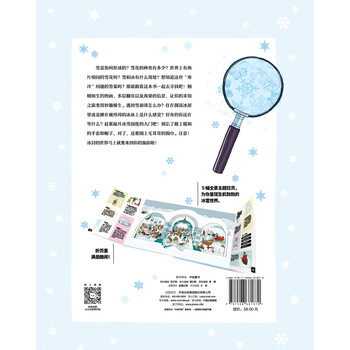 4.本书以点带面,由冰雪的传说开始延伸出一系列和这个主题相关的一些有趣的知识,视角新颖。用剥洋葱的方式,多角度多层面地呈现神秘的冰雪世界,精彩纷呈,趣味十足,给孩子一个观察世界的全新视角。