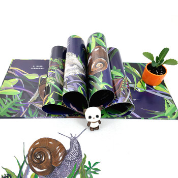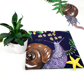 蜗牛的壳以及蜗牛爬行留下的粘液使用了uv工艺,摸起来有生动的触感,使蜗牛的形象更加立体而真实,为孩子提供了一种良好的感官体验。另外,在本书的最后还有对新西兰大蜗牛的科普介绍,从而使孩子能够更详细地了解新西兰大蜗牛。