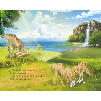 小霸王龙玩得正高兴时,幼年霸王龙的头号杀手——矮暴龙悄悄靠近了。