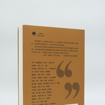 九久读书人早在数年前就推出了《巴黎评论》*著名的“作家访谈”系列。其实在访谈之外,《巴黎评论》本身也是国际*线的精品文学阵地,一直坚持刊发世界*的短篇小说,从一九五三年创刊以来已积累了数百篇精致的文字艺术品。二〇一二年,时任《巴黎评论》总编辑的洛林·斯坦恩邀请了二十位当代一流的短篇小说作家,按照他们自己的喜好与审美,各挑选一篇该杂志发表过的短篇小说,并为之撰写一则短评。之后,洛林·斯坦恩与塞迪·斯坦恩再将这些选中的小说和短评一起结集出版。