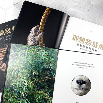 书中提供了动物生存的环境或者部分身体特征,并让儿童通过洞洞“偷窥”一下它的局部容颜,以激发他们猜一猜的强烈好奇心……真是JUE佳的一手资料。