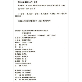 《银河铁道之夜》中收录了十篇宫泽贤治的经典童话作品。那些发生在铁道、星空、雪地、森林的一则则小故事,飘扬着丰富的想象力,飞舞着温馨童真的气息。其中《银河铁道之夜》一篇是代表宫泽贤治文学成就最高峰的经典之作,也是作者一生的最爱,他八年四易其稿,直至生命终结前仍在加工润色,被称为“永远没有完结的童话故事”,壮丽银河之上的凄美感伤故事,饱含温暖的生命哲思。