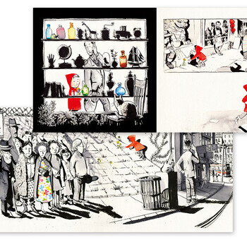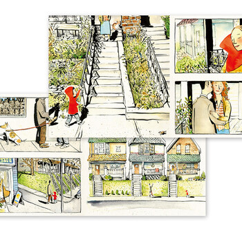 这是一本关于发现美、分享美的无字书。书里的小女孩珍妮随爸爸一起走过大街小巷回家去。途中,爸爸一直在忙着自己的事,可珍妮却发现了不一样的风景。和大人不同,小女孩眼中的五彩斑斓可能是一堆水果、一件花衣裳、一个形状奇特的瓶子,也可能只是路边的一朵不起眼的小花。珍妮一路收集了各种颜色的花朵,它们就是珍妮眼中的美好。但当珍妮在公园里看到一只死去的小鸟,珍妮决定把花分给小鸟。随后,她又遇到了公园长椅上的流浪汉和路边的小狗,她把花轻轻地放在流浪汉的身上,她和小狗握手打招呼,把花别在小狗的项圈上。这时,一直忙碌的爸爸也发现了珍妮的举动,他从拉着珍妮快走,变成了踱步到珍妮身后,看着她做这一切。回到家里,珍妮把花别在妈妈的耳后,也给两个弟弟的头发上插了几朵。最后,珍妮也把花送给了自己。她用这些话,向每一个她爱着的人表达了爱和关怀。